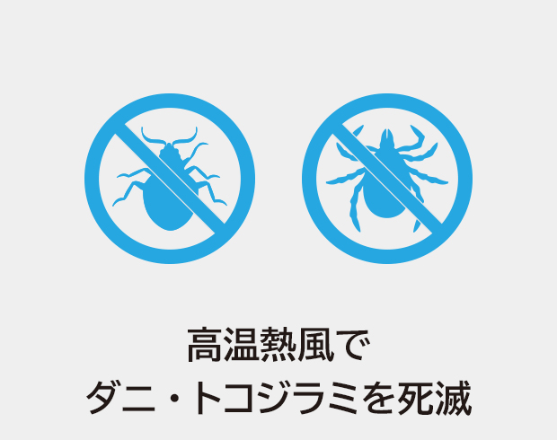 当社の布団乾燥車は、90 ~ 100℃の高温熱風を約30分以上循環させることで、寝具の奥深くに潜むダニやトコジラミ、さらに肉眼では見えない卵までしっかり死滅させます。