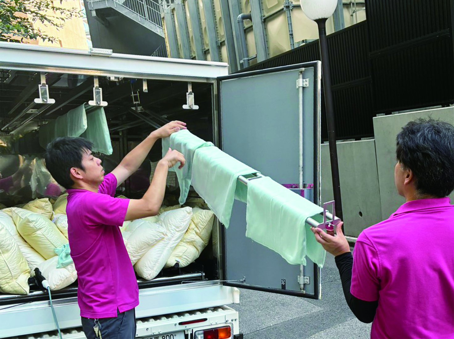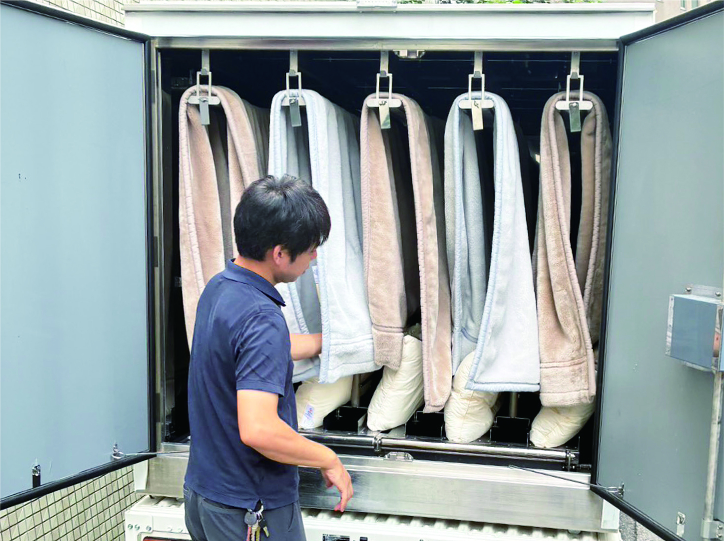 当社の布団乾燥車は、 時間最大15枚の布団を一括処理。