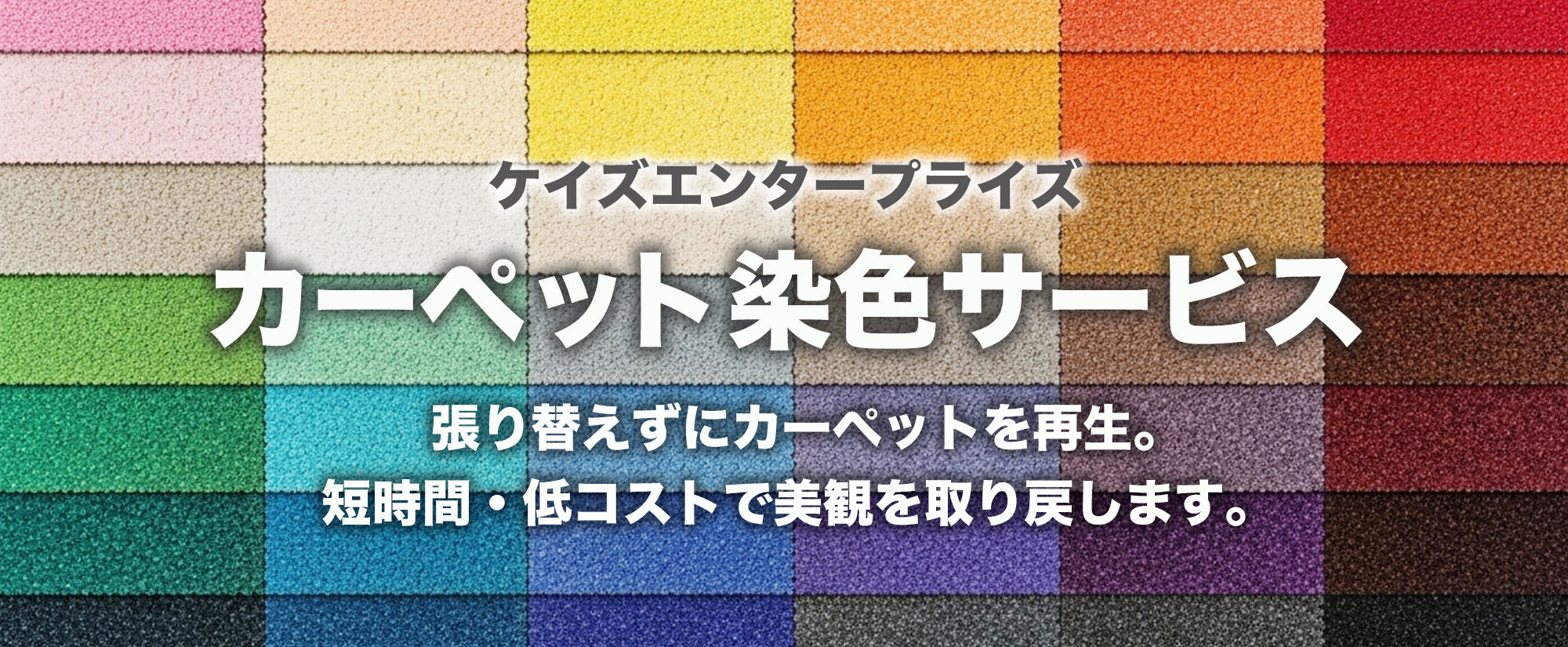 「カーペットの経年劣化や日焼けによる色あせ、色落ち、頑固な汚れやシミが気になる」「コストを抑えて美観を改善したい」と、お考えの方はぜひ、ケイズエンタープライズにご相談ください。